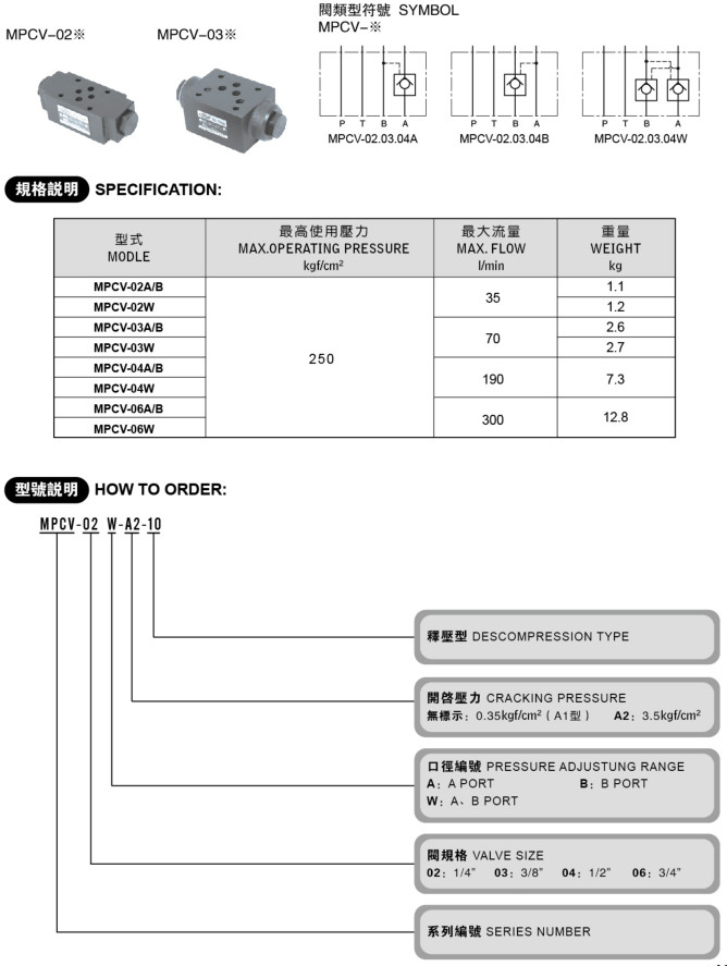 疊加式液控單向閥 MPCV